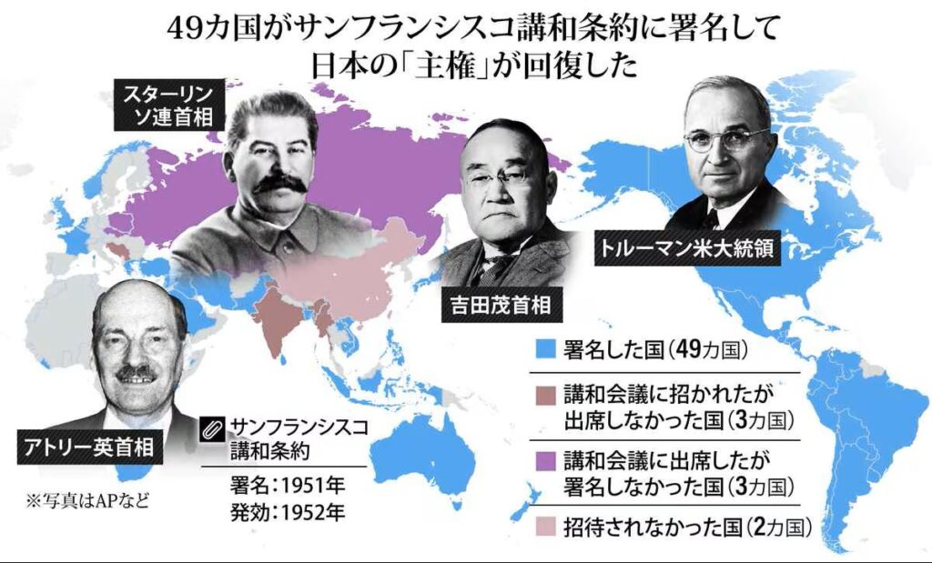 日本は1951年にサンフランシスコ講和条約を締結し、そこで集団的自衛権の行使が認められました。この条約により、日本は主権を回復し、アメリカとの安全保障関係(旧・日米安保条約)を築くこととなりましたが、日本側は、日米両国間において集団的自衛権の関係を設定し、これを根拠に主権回復後の日本においても米軍駐留を続けることを求めたのです。